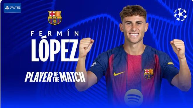 欧足联技术观察团给出了评选费尔明全场最佳的理由:“费尔明·洛佩斯在中场表现出色,控球精准且跑动积极,与佩德里一同组织进攻,并上演了帽子戏法,表现堪称完美。””